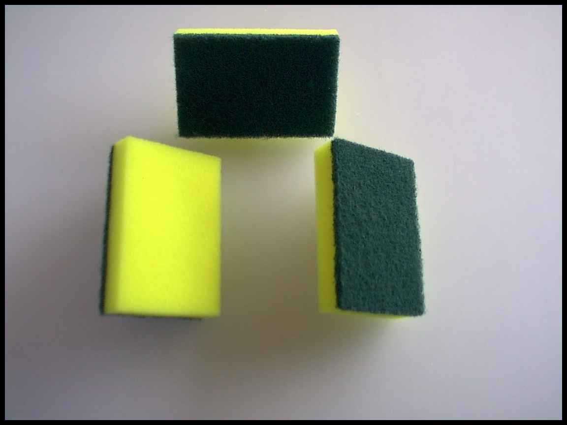Rectangle For work fast, they don't line, ideal for glassware, bigger absorption and easy to rinse.Colors: Green scouring pad-Yellow Sponge. Sizes: 7x10x2.8cms, 8x12x2.8cms. |